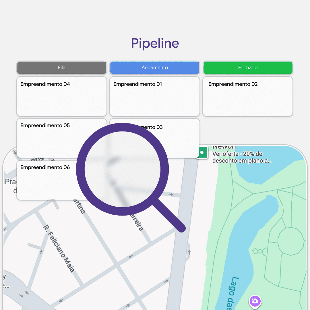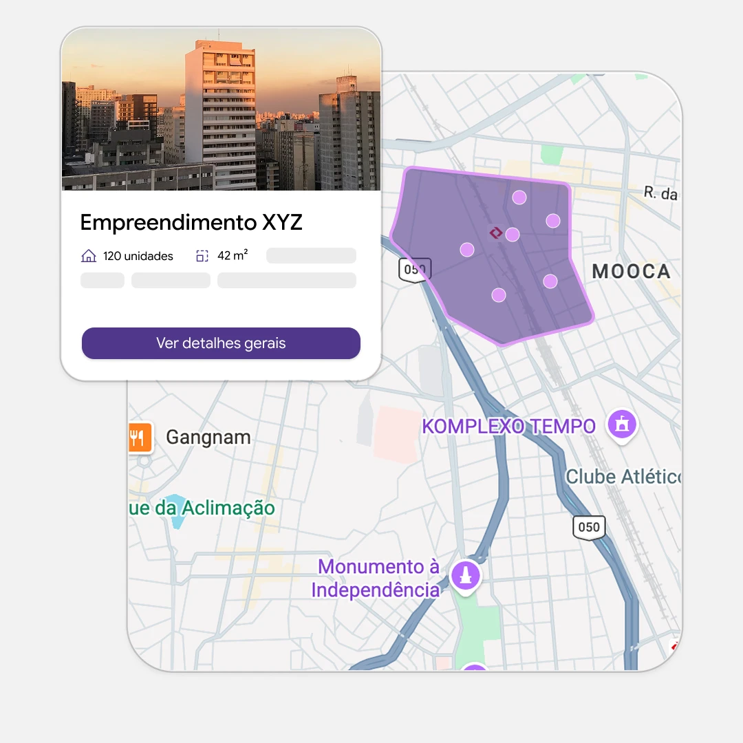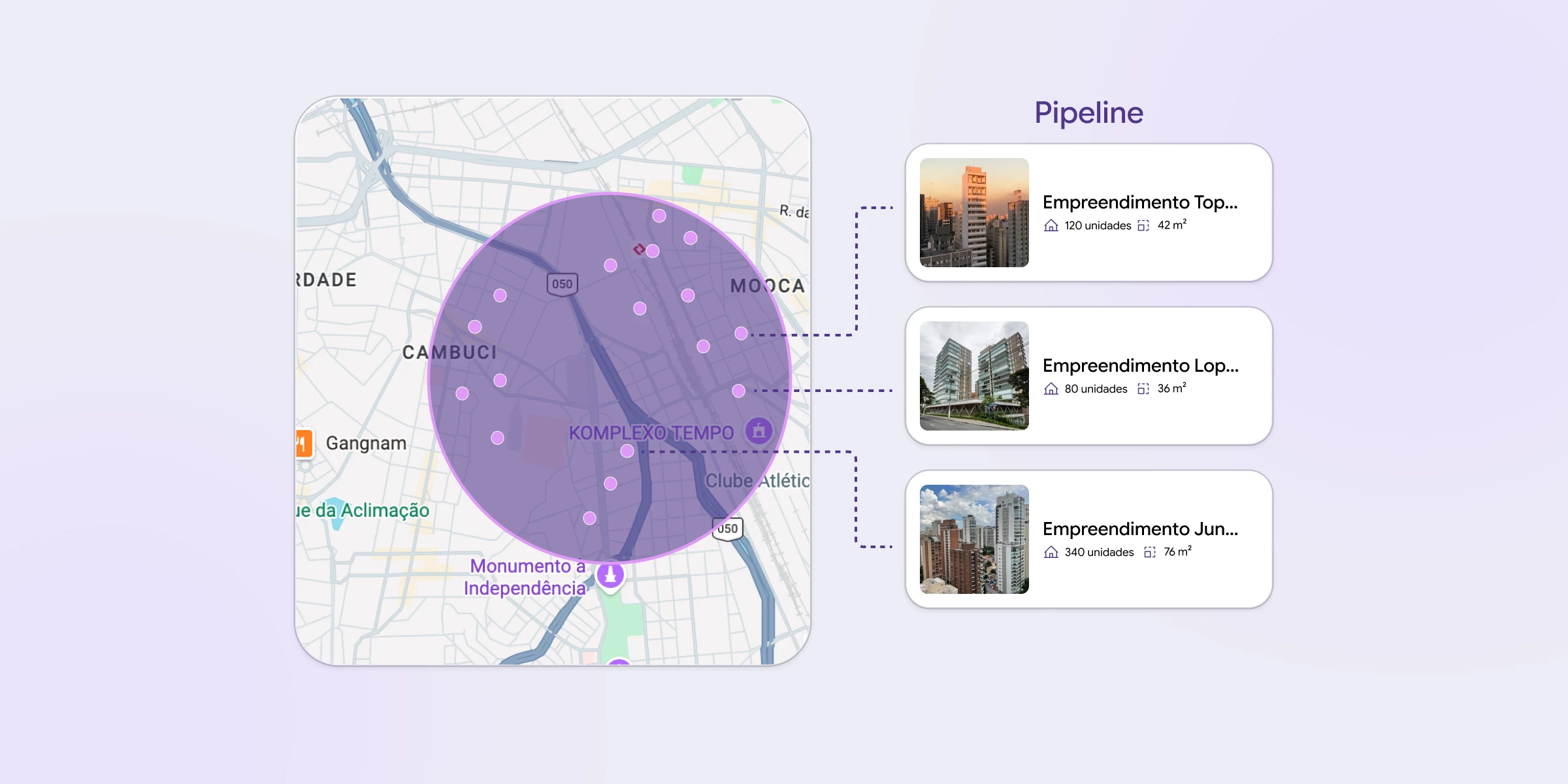 Com o Dataland GeoImóvel, você acessa o maior banco de dados de lançamentos imobiliários do Brasil. Cada empreendimento monitorado é uma oportunidade comercial com dados de localização, fase, tipologia e porte. Seu time comercial para de prospectar no escuro e passa a abordar com contexto.